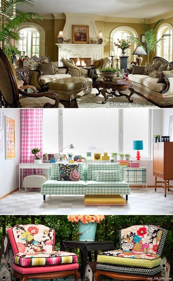 Độ mềm mại của vải cũng như sự đa dạng trong màu sắc, hình dáng cũng như từng chất liệu, vừa tạo sự ấm cúng nhẹ nhàng cho gian phòng vừa giúp bảo vệ ngôi nhà bạn. Theo từng mùa thì bạn sẽ sử dụng chất liệu và màu sắc riêng cho căn phòng, nên sử dụng chất liệu vải nặng, màu ấm cho mùa đông và chất liệu nhẹ, màu sáng cho mùa hè. Chọn sắc xanh lá cây cho mùa xuân, đỏ, vàng và hồng cho mùa hè, trắng xám và màu của kim loại cho mùa thu, xanh da trời cho mùa đông.